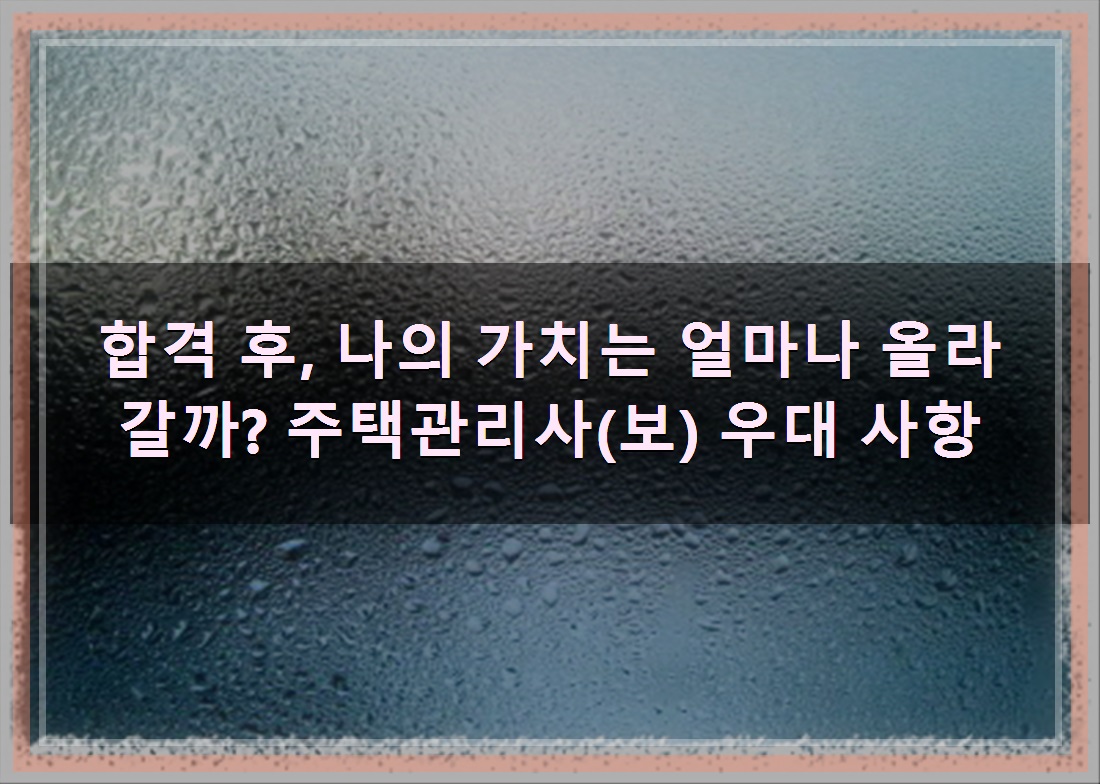 주택관리사(보) 자격증을 취득하면 일반 기업이나 공기업에서 어떤 우대나 가산점을 받을 수 있을까요? 자격증 취득 후 나의 경쟁력을 높여줄 수 있는 정보들을 확인해 보세요.