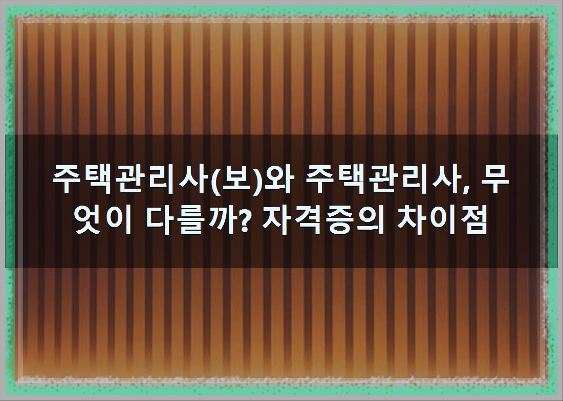 주택관리사 자격증을 준비하다 보면 '주택관리사(보)'라는 명칭을 접하게 됩니다. 주택관리사(보)와 주택관리사는 엄연히 다른 자격증일까요? 아니면 경력에 따른 구분일까요? 그 궁금증을 풀어드립니다.